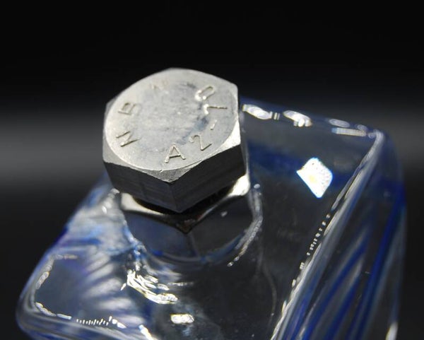 KOSTA BODA. KJELL ENGMAN. RARE DECANTER "MACHO" WITH METAL STOPPER IN BLUE