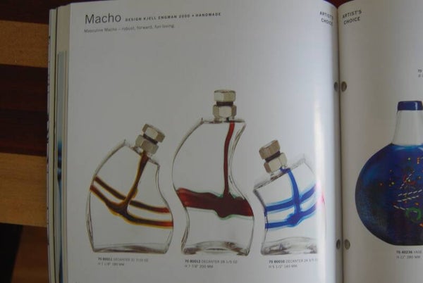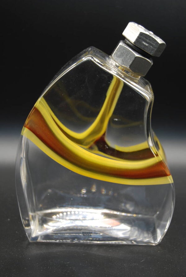 KOSTA BODA. KJELL ENGMAN. RARE DECANTER "MACHO" WITH METAL STOPPER IN RED/YELLOW