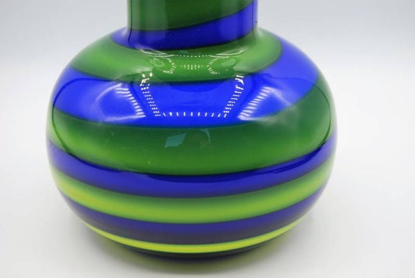 ALSTERFORS. PER OLOF STROM. VASE IN BLUE, GREEN AND YELLOW. WHITE INSIDE. SIGNED.P.STROM 69.HEIGHT 19 CM. IN VERY GOOD CONDITION.