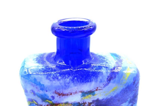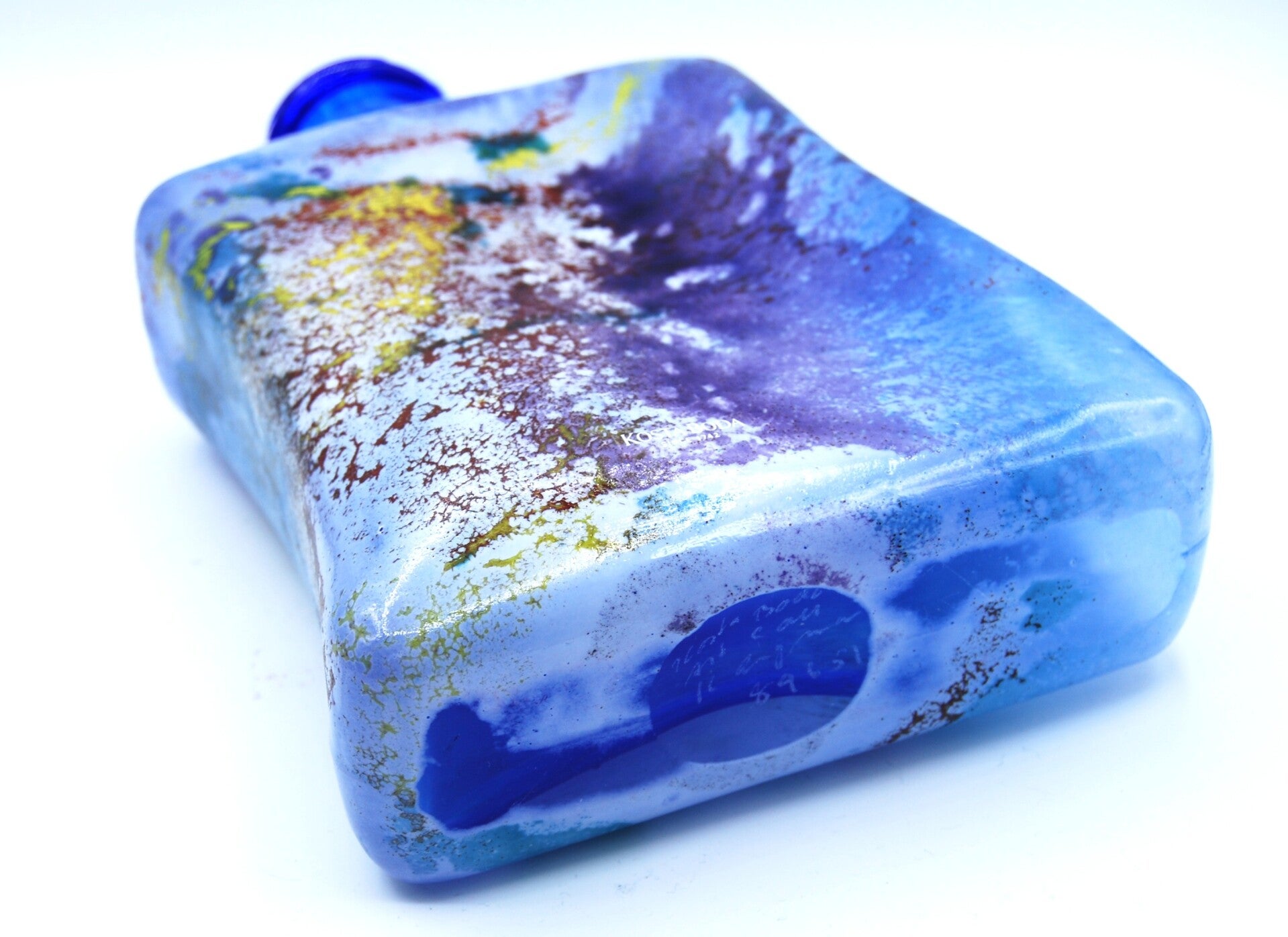 BEAUTIFUL AND RARE DECANTER WITH STOPPER "CANCAN "IN MULTICLOR MADE BY KOSTA BODA AND DESIGNED BY KJELL ENGMAN. TOTAL HEIGHT 30 CM. SIGNED: KOSTA BODA, ART. COLL. K. ENGMAN, ART.COLL. 89651. IN VERY GOOD CONDITION.