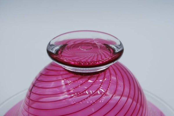 BEAUTIFUL BOWL "GRAAL" WITH A RED SPIRAL MADE WILKE ADOLFSSON STUDIOGLASS. SIGNED: WILKE ADOLFSSON 2001. HEIGHT: 10 CM, DIAM. 21 CM. IN VERY GOOD CONDITION