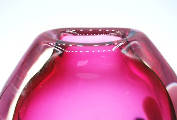 VASE VITREUM SWEDEN. THICKWALLED VASE IN PINK WITH BLACK AND WHITE DOTS. SIGNED: VASE VITREUM AB SUCALEN 745/2. HEIGHT 12. IN A VERY GOOD CONDITION.