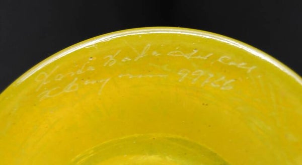 KOSTA BODA, KJELL ENGMAN. FOOTED CUP "HELIOPORA" IN YELLOW. SIGNED